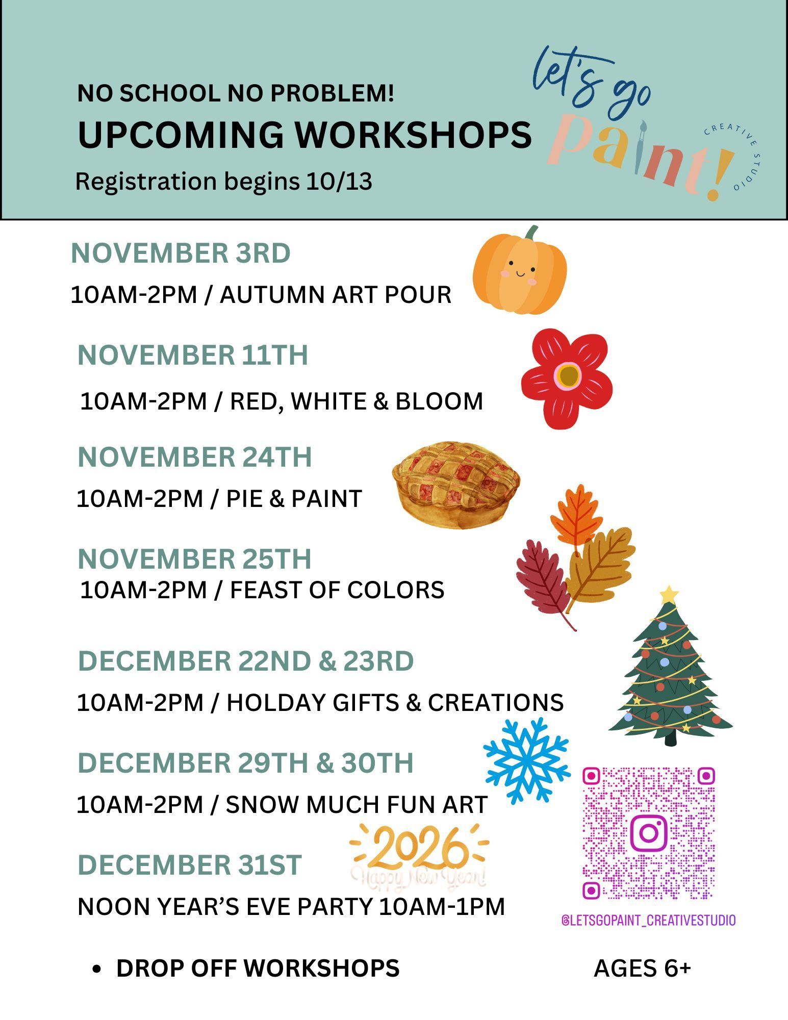 All creations go home the same day - no painting fees, no studio fees.